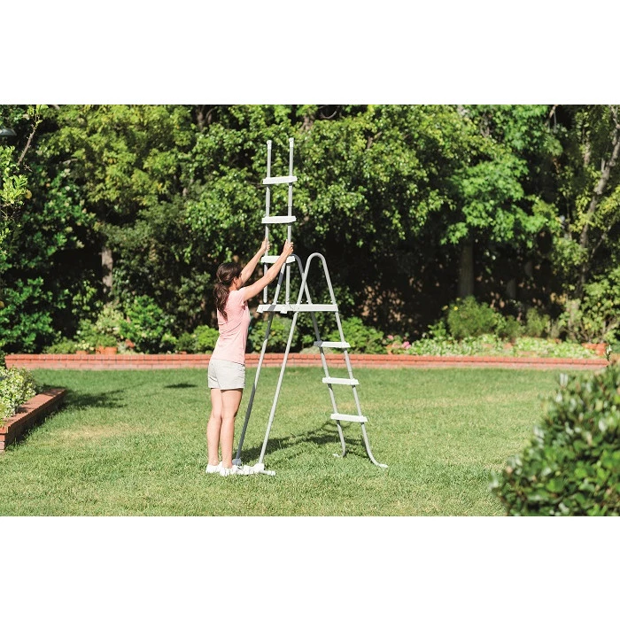 Ce modèle convient pour les piscines hors-sol (autoportées ou tubulaires) ayant une hauteur maximum de 1,22 m. L’échelle peux évidemment servir sur des modèles avec des hauteurs moindres.