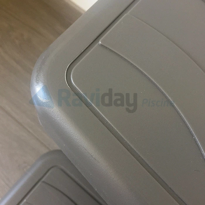 Raviday vous propose le marche-pied développé par Cover Valet, spécialiste en équipement pour spa. Ce marche-pied s’adapte à tout type et toute forme de spa. Que vous ayez un spa gonflable ou rigide, qu’il soit rond ou carré, le marche-pied est modulable. En effet le dessus des marches est interchangeable. Une marche est droite, l’autre est arrondie.