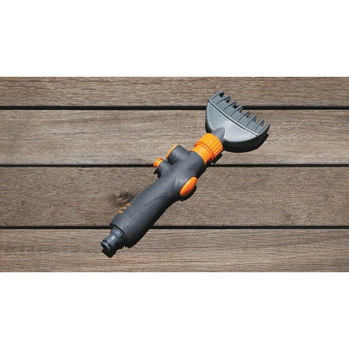 Cet objet est original et rempli plusieurs fonctions. Il fait office de pistolet nettoyeur. Cela grâce à 7 jets d’eau. Il suffit de brancher le nettoyeur à votre tuyau d’arrosage pour l’utiliser. Ce produit nettoie également grâce à ses « doigts ». Au nombre de 8, ils permettent d’écarter les plis de la cartouche pour atteindre tous les recoins. Un nettoyeur à la fois pistolet et peigne.