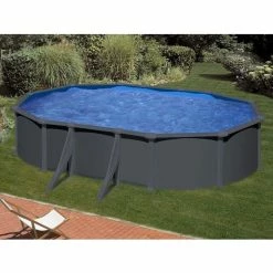 GRE Piscine Ovale Acier Gré Gris Anthracite – 5 X 3 X 1,20 M