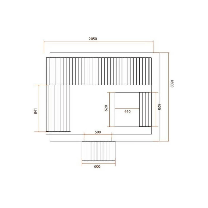 Le sauna dispose de 2 banquettes sur double niveau. Vous pouvez vous assoir en bas ou en haut.