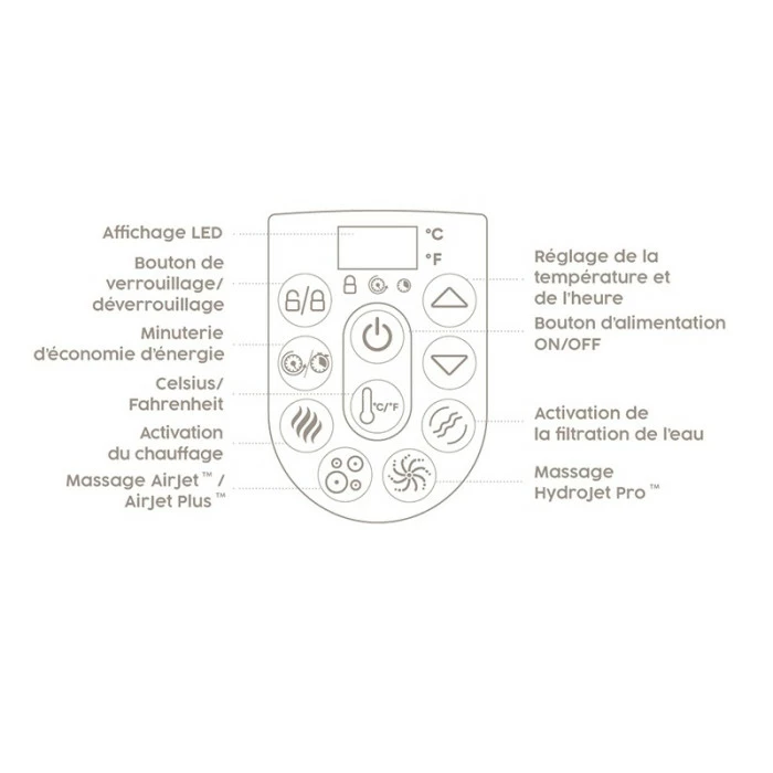 Pour une expérience encore plus réussie, choisissez entre les 2 intensités de massage disponibles sur le panneau digital de votre spa.