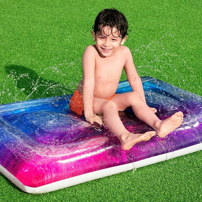 Grâce aux buses de pulvérisation disposées sur le dessus du tapis, votre enfant pourra profiter d’une surface mouillée et rafraîchissante en toute sécurité.